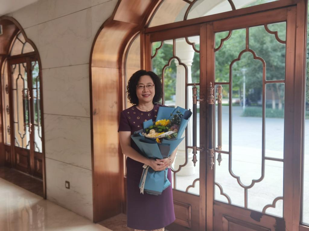 座谈结束后,大家合影留念,学生代表为程慧玲校友献花,常秀鹏书记代表Beat365中国唯一官方网站为校友赠送纪念品。
