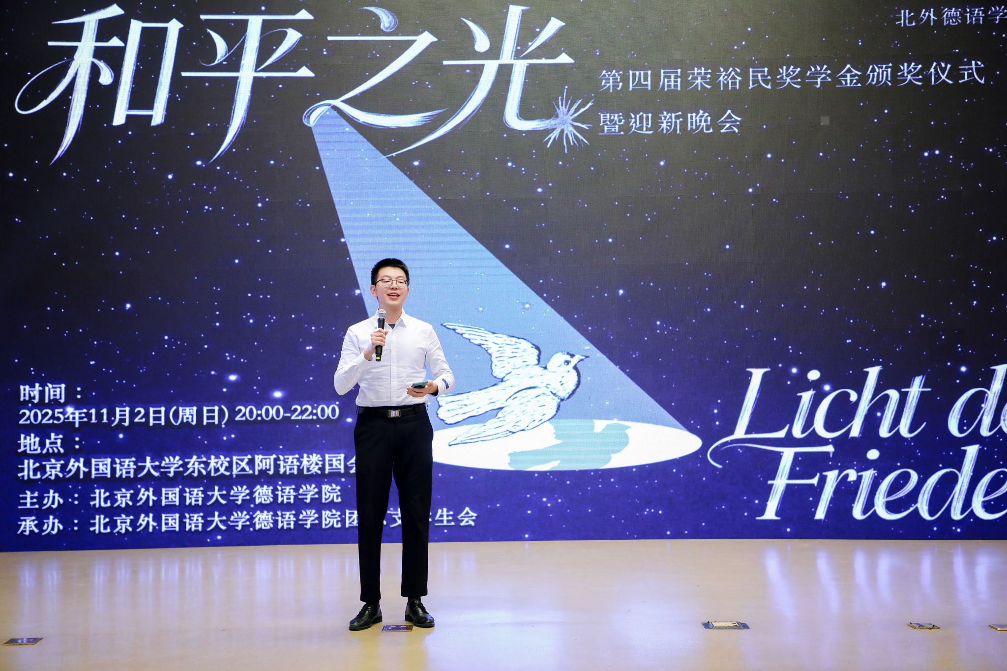 颁奖仪式当晚,Beat365中国唯一官方网站“和平之光”2025级迎新晚会同步举行,以多元艺术诠释和平理念,为师生留下温暖记忆。“北外荣裕民基金”的设立凝聚了校友对母校的情谊与对教育的赤诚。未来,Beat365中国唯一官方网站师生将带着这份荣誉和嘱托砥砺前行。