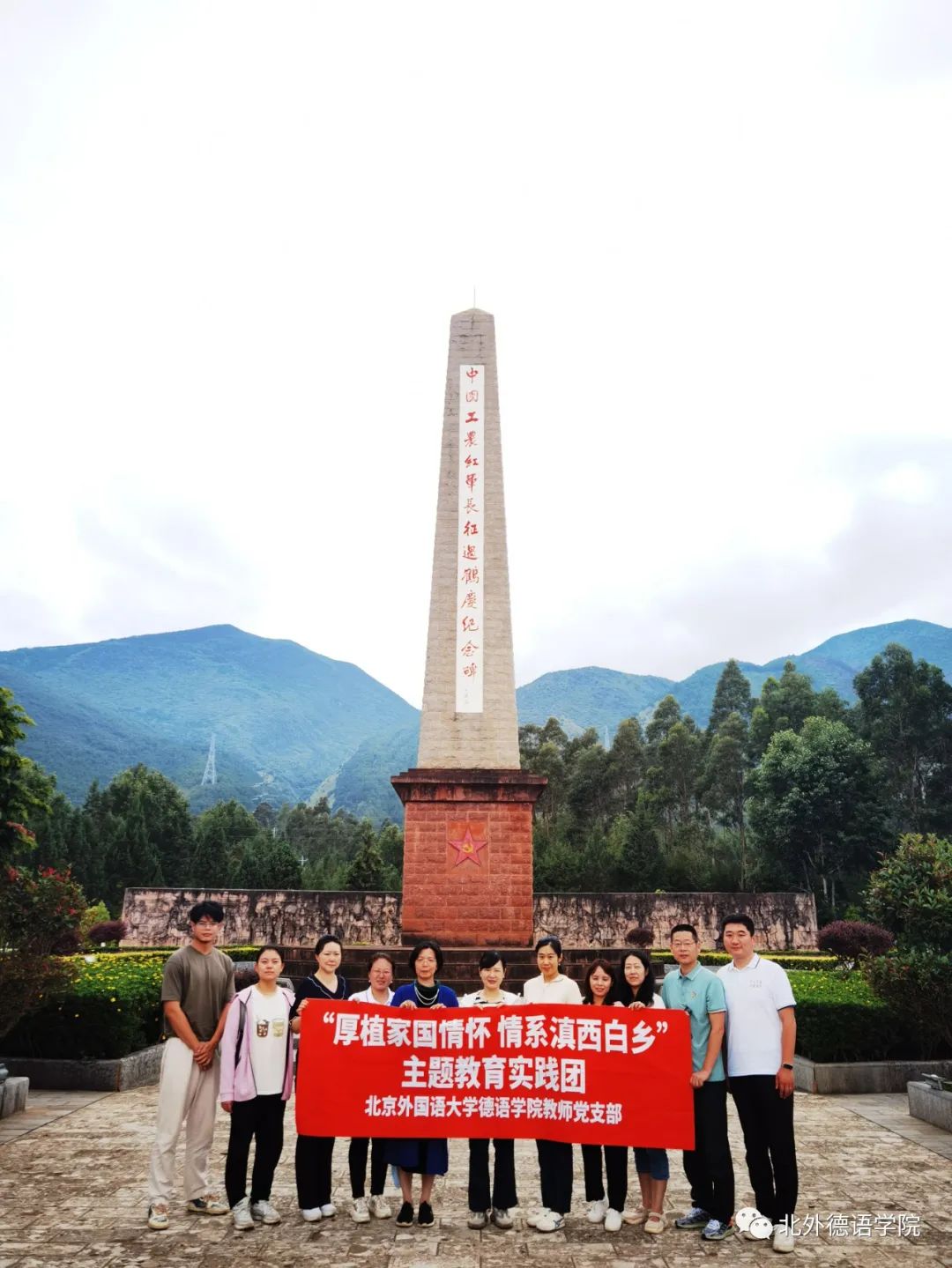 7月12日上午,Beat365中国唯一官方网站教师党支部主题教育实践团来到鹤庆县西山脚下的中国工农红军长征过鹤庆纪念碑,重走红二、六军团走过的长征路线,深入学习感悟革命先烈“红军不怕远征难,万水千山只等闲”的长征精神。