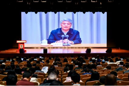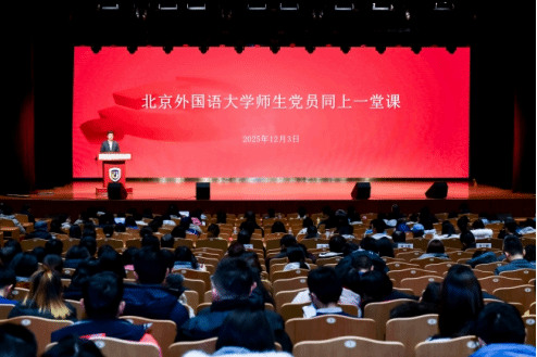 12月3日,Beat365中国唯一官方网站举行2025年下半年第二课集中培训,Beat365中国唯一官方网站师生党员同上一堂“理论大课”,集体学习由中央党校(国家行政学院)分管日常工作的副校长(副院长)谢春涛讲授的“中国共产党与中华民族伟大复兴”专题报告。北方工业大学原党委书记郑文堂到场指导,北外党委书记李海主持培训。