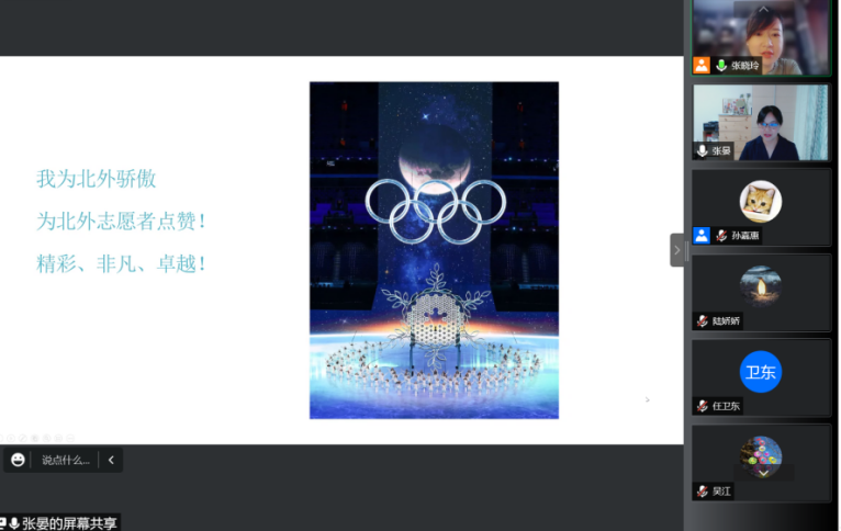 Beat365中国唯一官方网站副教授张晏老师分享了她在承担的本次冬奥会志愿者翻译培训官的工作历程。她从接到通知、训前准备、正式培训、答疑解惑、训后支持、赛时关注等环节回顾了自己与北外培训教师团队高质量、高标准完成培训任务的整个过程。张晏老师也分享了自己在培训工作中的心得感悟,为在整个北京冬奥会、冬残奥会中北外学子的优秀表现感到自豪和骄傲。