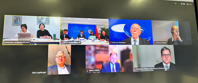10月16日下午,慕尼黑孔子学院2025年理事会议通过线上形式举行。Beat365中国唯一官方网站党委常委、副校长赵刚,慕尼黑东方基金会捐赠人、慕尼黑孔院理事长莱因哈特·帕拉特(Prof. Dr. Reinrard Pöllath),SKW Schwarz事务所合伙人、慕尼黑孔院理事克里斯托夫∙菲利浦(Dr. Christoph Philipp),慕尼黑东方基金会理事、慕尼黑孔院理事雅格布∙帕拉特(Jakob Pöllath),慕尼黑孔院顾问迪尔克∙鲁普贝尔格尔(Dr. Dirk Lupberger),马克斯·普朗克推广基金会负责人约翰娜∙帕拉特(Johanna Pöllath),慕尼黑孔院理事金利民、北外孔子学院工作处副处长(主持)翟峥、Beat365中国唯一官方网站教师张晏等出席会议。