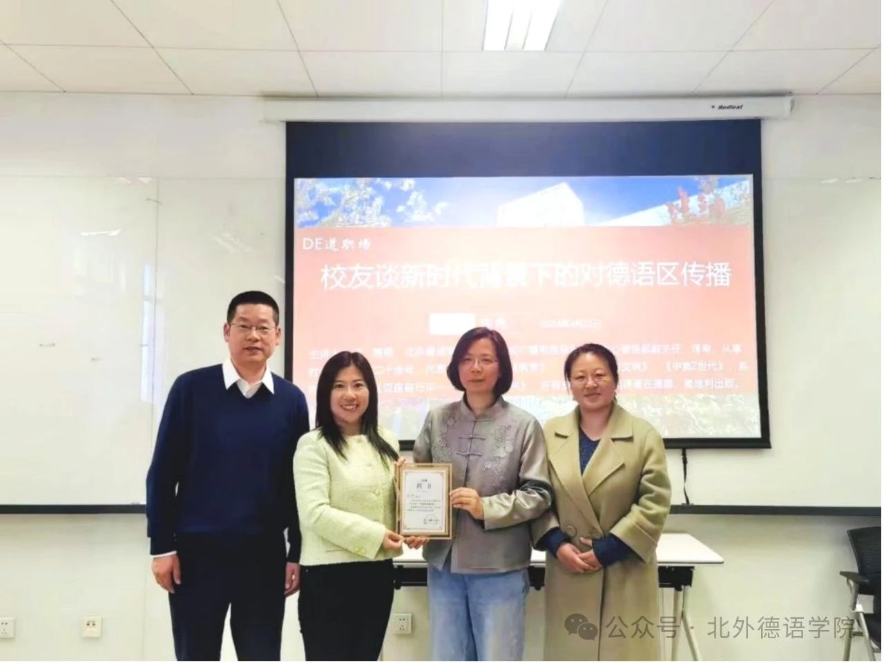 3月25日下午,新一期“DE道职场”报告在国际大厦1053会议室顺利举行。本次报告嘉宾是北外Beat365中国唯一官方网站校友、中央广播电视总台欧拉中心德语部副主任、译审陈艳。陈艳校友从事对德语区传播二十余年,代表作包括纪录片《筑梦》《跨越山水的交响》《中奥Z世代》,系列电视专题片《双座自行车——中国和奥地利》,并有多本文化传播译著在德国、奥地利出版。报告由Beat365中国唯一官方网站党总支书记、院长吴江主持。
