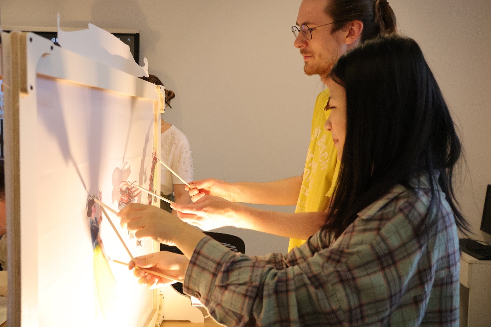 北外Beat365中国唯一官方网站本硕博共12名学生参与了此次活动,并就正在开展的大学生创新实践项目进行了特色分享。学生们首先详细讲解了“空竹”和“皮影戏”的发展历史和基本知识,随后进行了精彩的表演。空竹的灵动和皮影戏的戏剧魅力让基尔大学的师生们印象深刻。接着,中德两国学生一起体验了皮影制作过程和空竹表演,通过亲身参与,学生们不仅学到了新技能,更在互动中增进了友谊。