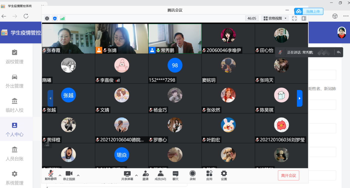 党总支书记常秀鹏对冬奥会志愿者们的服务工作给予极大的肯定,感谢大家为冬奥会的顺利举办所做的努力,志愿工作的经历对每位同学来说都是非常珍贵的,并提醒大家注意身体,充实隔离生活,多运动,保持身心健康。同时告知大家学院已制定了详细的教学方案,线上线下相结合,切实解决了隔离期间的上课问题。