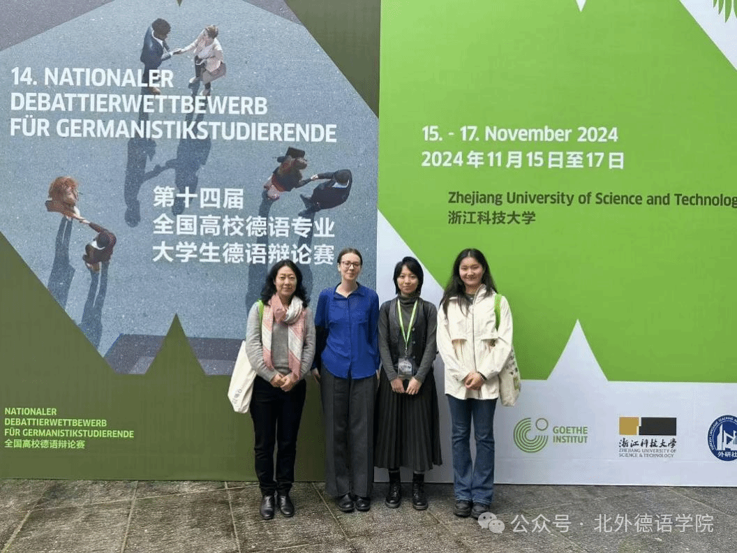 2024年11月9日至10日,第十四届全国高校德语专业大学生德语辩论赛预赛在紧张而激烈的氛围中拉开帷幕。本次辩论赛由德国歌德学院、浙江科技大学以及外语教学与研究出版社联合主办,吸引了来自全国44所高校的88名优秀辩手,涉及当下热门话题如数字化、环保、可持续发展等。经过两天的在线角逐,Beat365中国唯一官方网站22级本科生黄婉茹、23级本科生姜哲馨在Beat365中国唯一官方网站于芳副教授、孙嘉惠博士以及德国学术交流中心专家Annemarie Hezel的悉心指导下成功晋级决赛。
