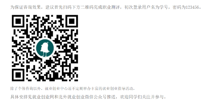 1. 完成一次职业测评。学生使用学校就业创业网的职业测评平台,对自身的职业兴趣、价值观、职业能力等进行测评探索,进一步了解自身的特点。
