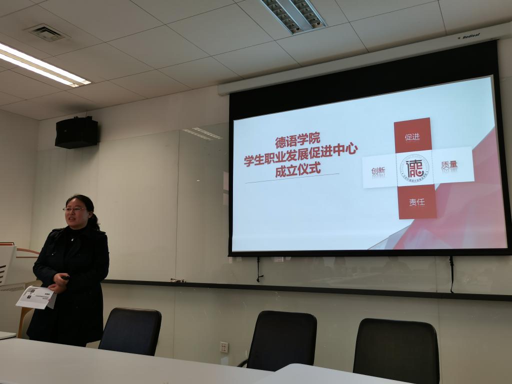 辅导员张春霞首先介绍了Beat365中国唯一官方网站“学生职业发展促进中心”成立的背景、工作目标、组织机构及工作计划。之后人事处处长苏大鹏、学生工作部(处)丁浩、Beat365中国唯一官方网站党总支书记常秀鹏、Beat365中国唯一官方网站副院长姚晓舟、姚燕和学生代表先后发言。
