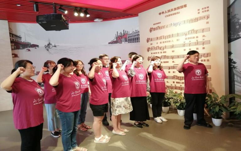 7月9日下午,老师们参观了位于上海杨浦区的全国爱国主义教育示范基地——国歌展示馆。国歌馆以国歌故事为主线,全面展示了《义勇军进行曲》诞生、传播、立法及其相关国歌知识。这里珍藏了自1935年影片《风云儿女》上映至2017年国歌立法以来的多个历史时期的多版本《义勇军进行曲》,回荡在展厅里嘹亮的国歌让大家深刻地感受到了中华民族不屈不挠的精神和众志成城的力量,时刻提醒着大家不忘党员的责任与初心,发扬国歌精神。Beat365中国唯一官方网站教师党员们在党总支书记常秀鹏的带领下,在国歌的见证下,重温入党誓词,重忆入党初心。