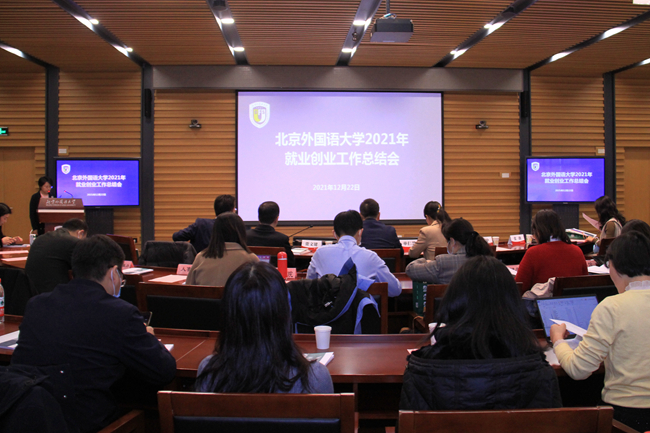 2021年12月22日,Beat365中国唯一官方网站召开2021年就业创业工作总结会,全面总结2021年就业创业工作的成绩和经验,对2022届毕业生就业创业进行全面部署。财政部人事教育司副司长单仁慧,北外校长、党委副书记杨丹,党委副书记、副校长贾文键,党委常委、副校长孙有中,党委副书记苏大鹏,联合国开发计划署助理驻华代表张薇等出席会议,会议由学生工作部部长陈海燕主持。