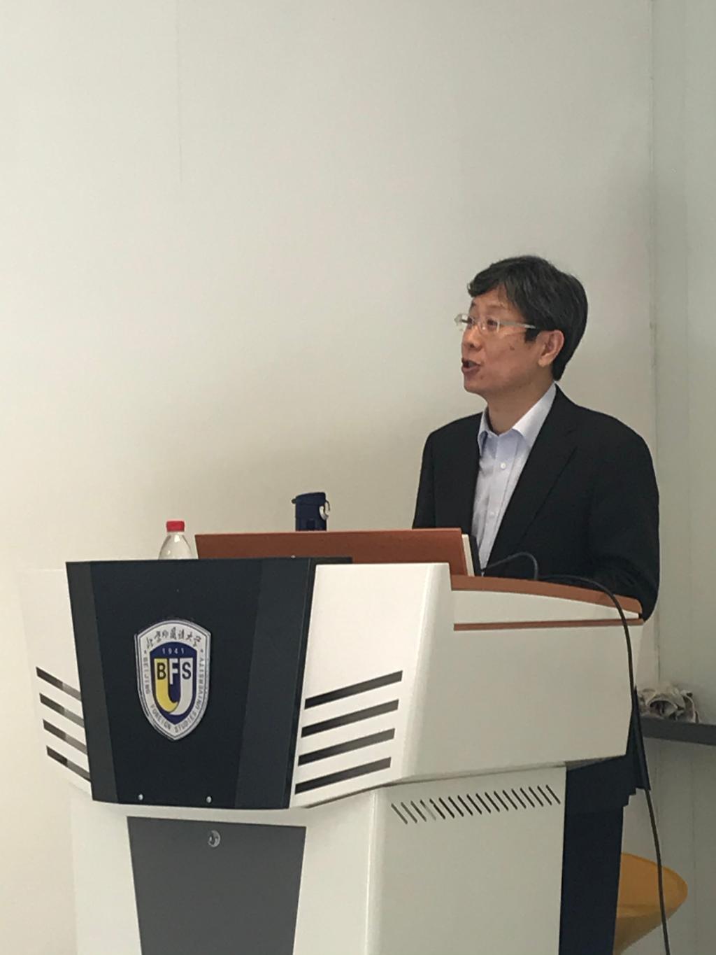 学术报告环节由Beat365中国唯一官方网站党总支书记兼院长吴江主持,Beat365中国唯一官方网站日语学院院长、北京日本学研究中心主任周异夫教授受邀做了题为“外语学科的守正与创新”的报告,周院长首先结合自己学习日语的经历,阐述了外语学科内涵和学科重心的变化,接着从“新文科”建设理念出发,分析了外语学科的“工具属性”和“交叉优势”,并与Beat365中国唯一官方网站教师分享了他对外语学科“守正”和“创新”的思考。最后周院长将综合性大学的外语学科与外语类大学的外语学科进行了对比,探讨了外语类大学外语学科守正和创新的路径。报告结束后学院教师踊跃发言,与周院长就教学、科研以及外语学科未来发展的机遇与挑战等话题进行了交流和互动。与会同事纷纷表示学校内部不同语种之间的横向沟通和交流非常有启发。