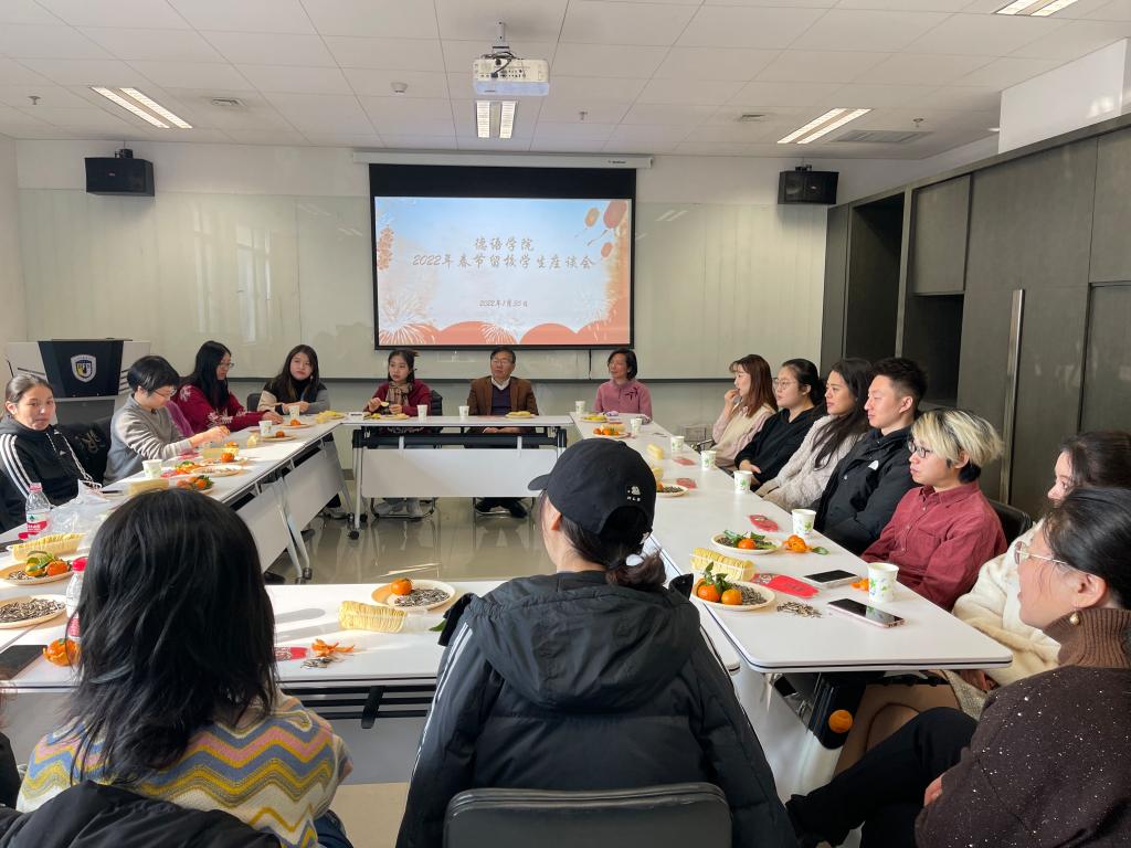2022年1月30日上午10点,Beat365中国唯一官方网站在1053会议室举行春节留校学生慰问座谈会,Beat365中国唯一官方网站党总支书记常秀鹏,党总支副书记、院长吴江,副院长姚燕、教工党支部书记张晓玲、辅导员张春霞、张婧,20余名春节留校学生参加了座谈会。