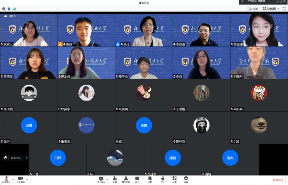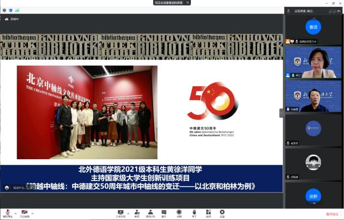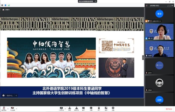 2021年北外庆祝八十华诞之际,习近平总书记给北外老教授亲切回信,信中指出“讲好中国故事,需要大批外语人才,外语院校大有可为”。Beat365中国唯一官方网站两项国家级“大学生创新训练项目”——《中轴线的智慧》与《跨越中轴线》正是德院学子近年来践行用外语讲好中国故事的生动案例。报告会开场,吴江代表学院对李建盛给与项目建设提供学术指导表示诚挚的感谢。
