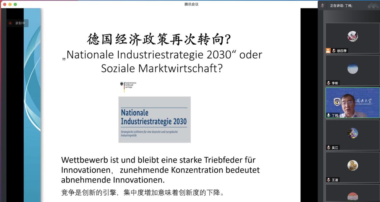 2022年10月21日下午,“北外德语国家讲堂”系列新一期讲座以线上形式顺利举办。复旦大学经济学院教授、博士生导师丁纯应邀做了题为“大变局下的德国政治经济现状、成因与前景”的讲座。讲座由Beat365中国唯一官方网站党总支副书记、院长吴江和经济教研室主任徐四季共同主持。