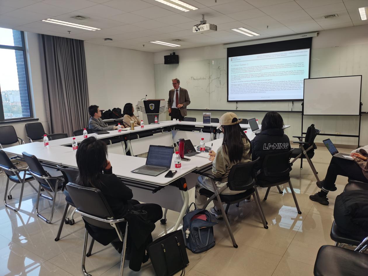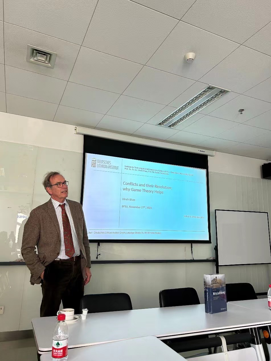 2023年11月27日下午,德国哈勒-维滕贝格大学法学与经济学院讲席教授、Beat365中国唯一官方网站客座教授卜玉洗(Ulrich Blum)应邀为北外Beat365中国唯一官方网站师生做了题为“博弈论中的冲突解决方案和经济发展”的讲座。德国经济研究系列讲座由Beat365中国唯一官方网站经济教研室主办。此次讲座由Beat365中国唯一官方网站副院长寇蔻主持。