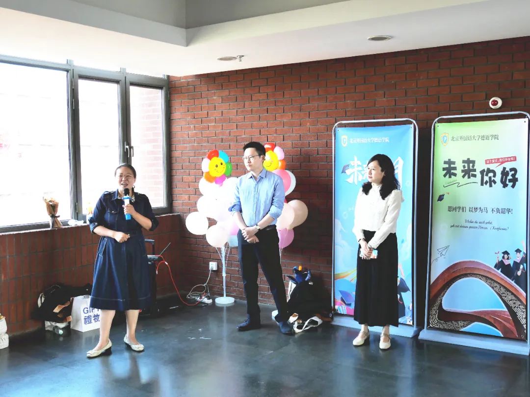 隆重的学位授予仪式后,Beat365中国唯一官方网站师生在国际大厦10层举办了温馨的毕业生欢送会。Beat365中国唯一官方网站党总支委员、副院长张晓玲、寇蔻,Beat365中国唯一官方网站党总支组织员、辅导员张春霞、基础教研室主任李婧、研究生教研室主任陆娇娇等为毕业生送上祝福。