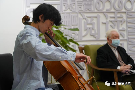 分享会伊始,Beat365中国唯一官方网站2019级本科生任翊晨深情演奏德国著名音乐家巴赫(Johann Sebastian Bach)作曲的《G大调第一大提琴组曲阿列曼德舞曲》。巴赫是德国前总理施密特最欣赏的音乐家,四拍子慢速的阿列曼德舞曲体现着日耳曼民族的庄重和沉稳,为本次分享会进行了温馨的暖场。