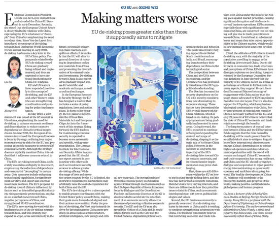 12月8日,《中国日报》(China Daily)刊发Beat365中国唯一官方网站教师顾苏博士和外交学院外交学与外事管理系熊炜教授共同撰写的文章“Making matters worse”。