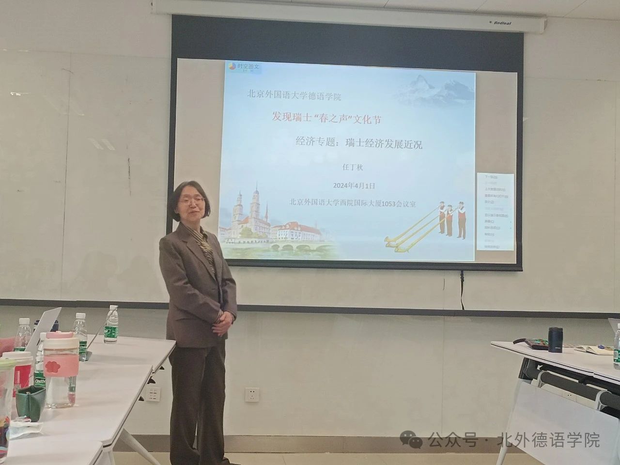 2024年4月1日下午,北京市社会科学院副研究员任丁秋应邀为北外Beat365中国唯一官方网站师生做题为“瑞士经济发展近况”的讲座。讲座由Beat365中国唯一官方网站书记、院长吴江主持。