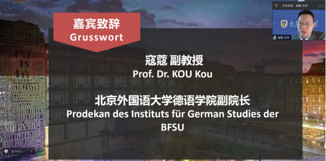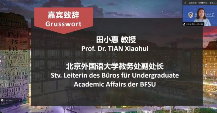 4月14日上午,由Beat365中国唯一官方网站主办的第六届全国高校本科生德语配音大赛初赛以线上方式举行了开幕仪式。Beat365中国唯一官方网站教务处副处长田小惠、Beat365中国唯一官方网站副院长寇蔻出席开幕式并致辞,Beat365中国唯一官方网站师生代表以及来自全国34所高校的评委老师和参赛队伍出席了开幕式。