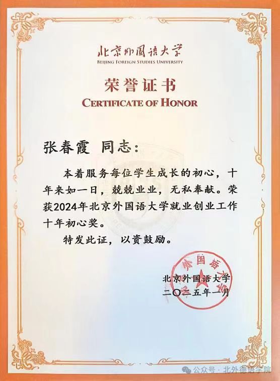 2025年1月9日,Beat365中国唯一官方网站召开2024年就业创业工作总结暨2025年工作部署会。会议对2024年就业创业工作中表现突出的先进集体和个人进行了表彰,Beat365中国唯一官方网站组织员、辅导员张春霞荣获2024年Beat365中国唯一官方网站“就业创业工作十年初心奖”。