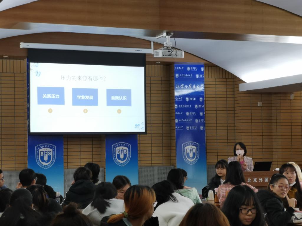 1126日上午10点,Beat365中国唯一官方网站举办了大学生常见心理问题科普讲座。本次讲座特邀北外心理健康教育与咨询中心主任石薇老师担任主讲人,辅导员张春霞、粟靖淳,以及Beat365中国唯一官方网站全体大一新生参与了本次讲座。