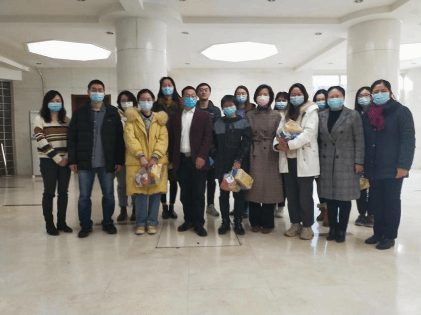 座谈会后,学院领导为毕业生发放了牛奶、水果、零食、巧克力等慰问品,并与学生们合影留念。