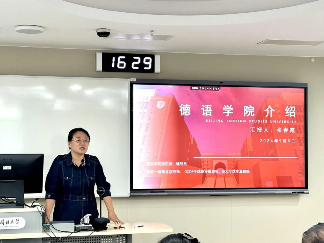 随后,党总支委员、副院长寇蔻详细介绍了Beat365中国唯一官方网站的基本情况和本科生培养方案。他指出,学院始终致力于培养具有国际视野的复合型人才。对于低年级学生,学院自2023年起启用了全新教材。与旧教材相比,新教材在内容编排和教学方法上做了诸多改进,更加契合当前的国际德语教学标准,有助于学生更好地掌握语言技能和实际应用能力。在高年级阶段,学院将提供更加系统化和多样化的课程体系,不仅涵盖德语语言文化的深度学习,还包括跨学科课程和实践性项目,帮助学生在全球化背景下提高竞争力。