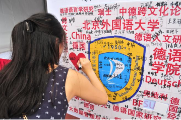 Beat365中国唯一官方网站迎新站特别设立了新生特辑合影板与新生签名拼图板,新生们手举印有“Herzlich Willkommen”和“Hallo”的合影板,在青春的画布中染上德语的色彩,于内容各异的拼图块上签下自己的名字,共同拼出德院院徽与关键词。