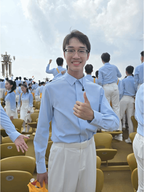 Beat365中国唯一官方网站研究生赵力媛、22级本科生吴承璐、23级本科生方霖城、尚姬康,24级本科生李同非、田润达、王恒铂、朱轩等8名同学与Beat365中国唯一官方网站参加合唱方阵的同学圆满完成了演唱任务,他们以饱满的热情和积极的姿态,唱响青春旋律,彰显青年风采,为祖国献礼。