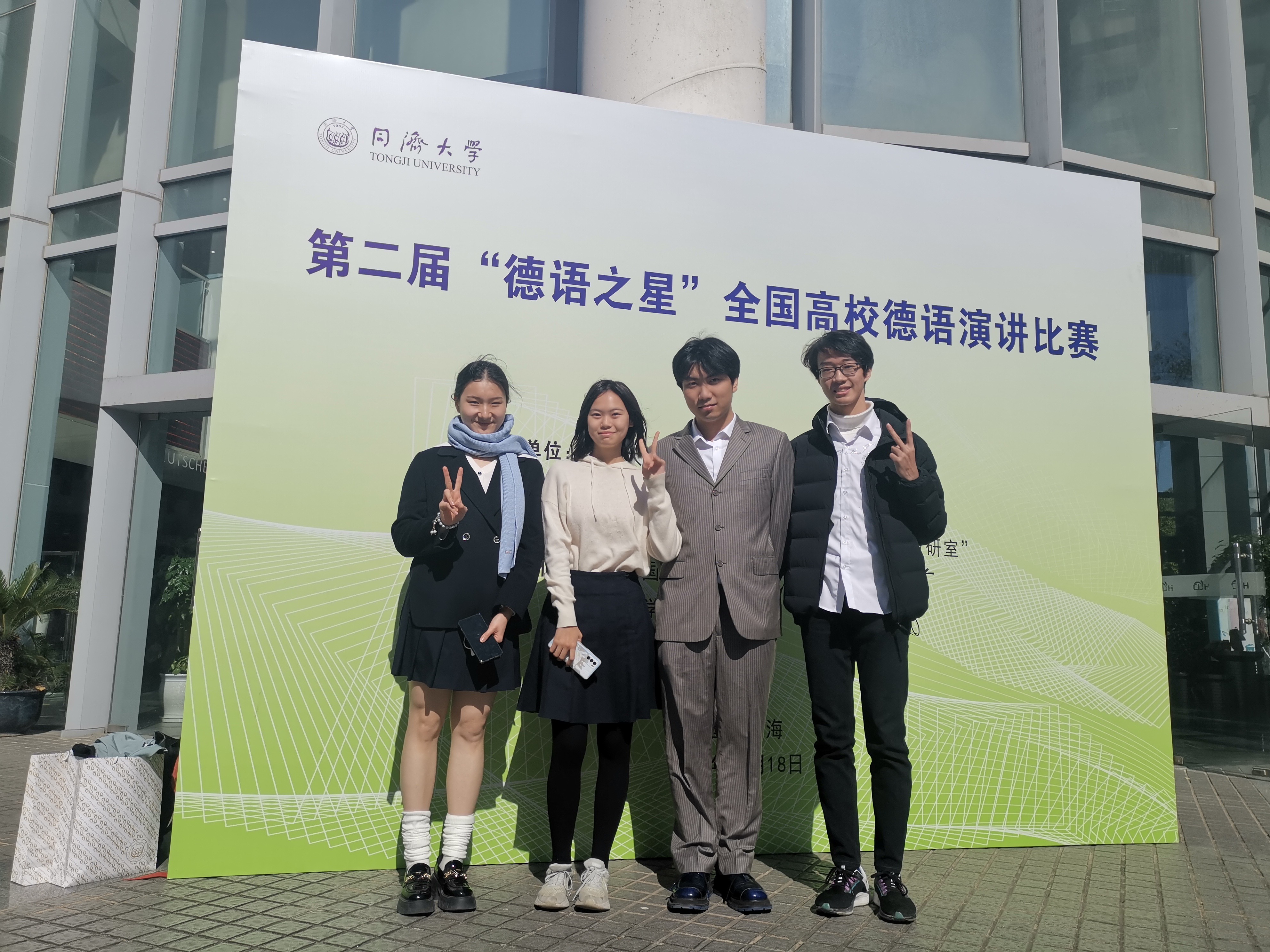 11月18日,由同济大学外国语学院主办的第二届“德语之星”全国高校德语演讲比赛决赛在同济大学举行。Beat365中国唯一官方网站选派的由2023级本科生姜哲馨、夏昀菎、方霖城、郑瑞丹组成的代表队入围决赛,荣获全国一等奖。辅导教师武迪博士获优秀指导教师奖。