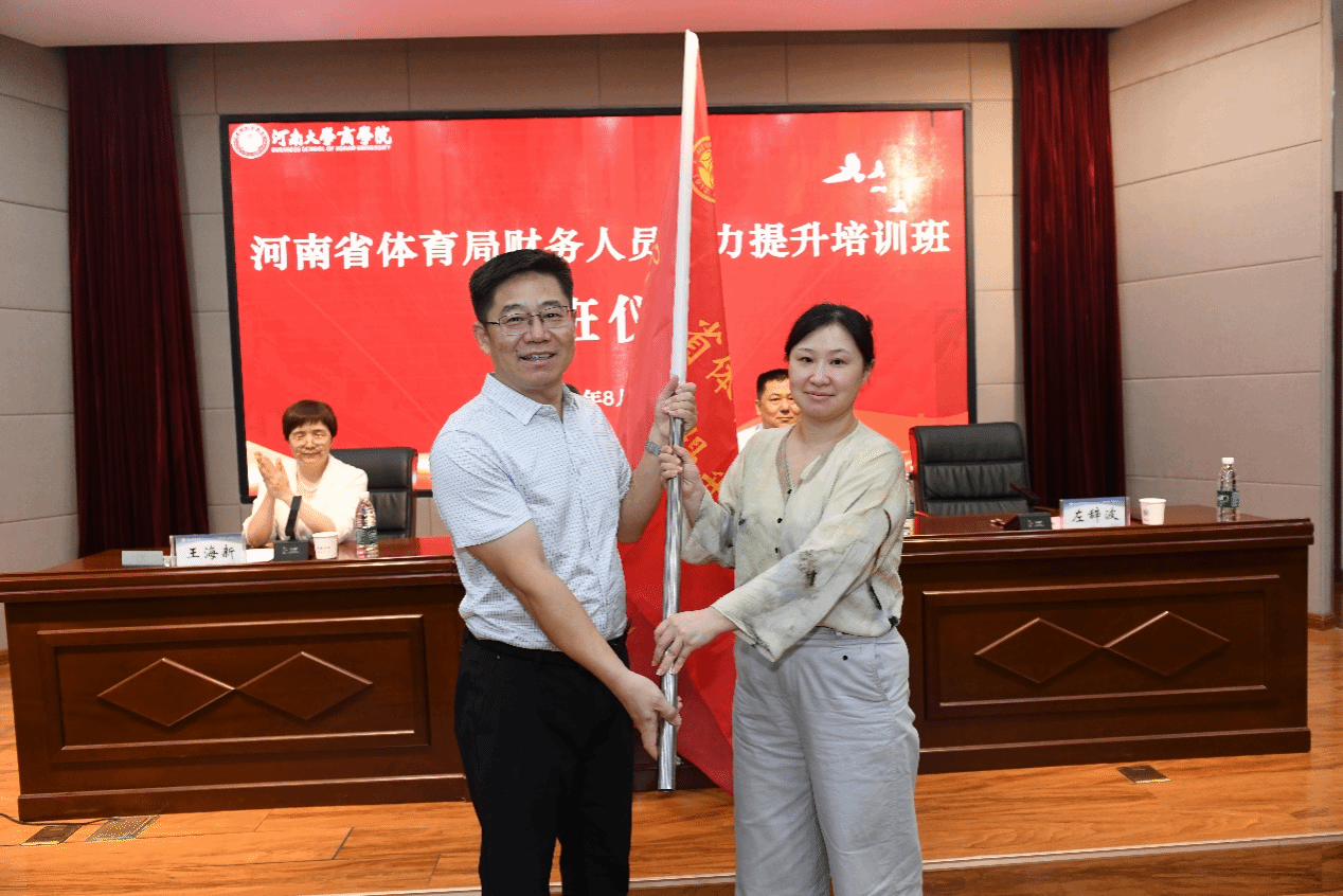 金秋送爽,丹桂飘香。8月26日上午,由欧博abg官方网站承办的河南省体育局财务人员能力提升培训班开班仪式在欧博abg官方网站二楼报告厅举行。欧博abg官方网站副校长张礼刚、河南省体育局党组成员、副局长李激扬,欧博abg官方网站党委书记左辞波出席开班仪式。仪式由河南省体育局体育经济管理处(审计处)处长王海新主持。
