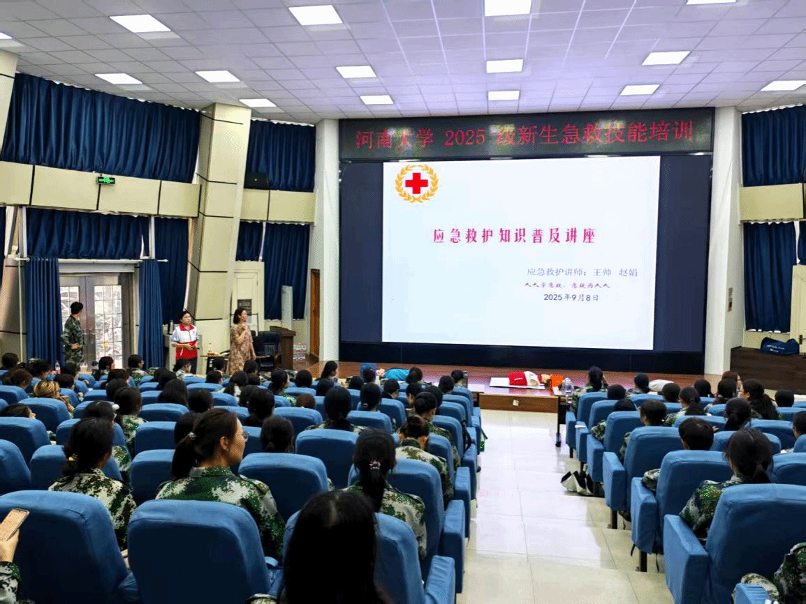 为增强2025级新生安全防范意识,掌握基本应急救护技能,9月8日上午,欧博abg官方网站2025级全体新生在金明校区锥形报告厅一楼参加由校医院统筹组织、特邀开封市示范区红十字会专业急救护讲师王帅和开封市蓝鲸水上救援队赵娟进行专业急救技能培训。本次培训内容涵盖心肺复苏+AED、海姆立克急救法及多种创伤包扎方法,为新生带来一堂生动而实用的生命安全实践课。