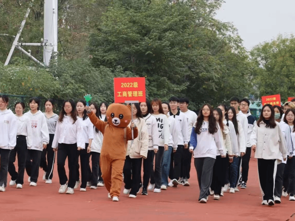 在担任工商管理班班长期间,院运动会上她主动穿厚重玩偶服带队,挥舞班牌与同学互动,汗水直流仍活力满满。在她的带动下,班级方阵士气高涨,最终获“团体优秀奖”。