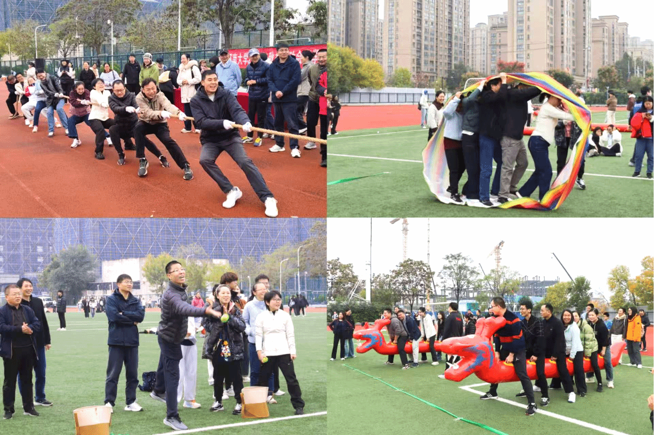 本届运动会参赛规模创历年之最,师生参与热情空前高涨。项目设置兼顾竞技性与趣味性,既有百米跑,跳远,接力跑等传统田径项目,也加入了拔河,四人五足,旱地龙舟等一系列富有趣味性的团体项目。